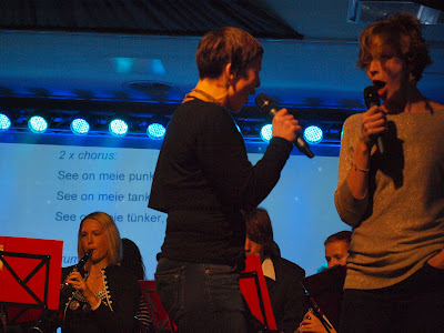 At first all the guests were invited to the ground floor lobby, where a big band from Põlva (a small town in Southern Estonia) welcomed us with some jolly music and we all marched to the second floor restaurant where the band members found their places on the stage and the audience were made to sit down, drink and have fun.