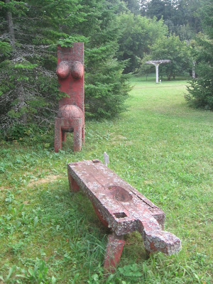 Eestis on minu teada "ranges mõttes" kaks skulptuuriparki: Sagadi mõisapark ja Richard Sagritsa majamuuseum, mis mõlemad asuvad Lahemaa kandis. Sagadi mõisa haldab Riigimetsa Majandamise Keskus, kes korraldas seal 90ndate lõpus ja nullindate alguses ka reipalt puuskulptuuride sümpoosione. Tänaseks on see traditsioon katkenud ja näib, et keegi mõisaparki aastate jooksul kogunenud skulptuuride hoolitsemise või ärakoristamise pärast muret ei tunne. Selle aasta augusti seisuga on mõisa territooriumil säilinud küll neli-viis efektset skulptuuri, kuid ka kümmekond kuivanud roigast, mille puhul on raske mõista, kas tegemist on lõkkematerjaliga või kännuga, mille otsast lõket vaadata. Nimetagem need esemed ajahammasteks.