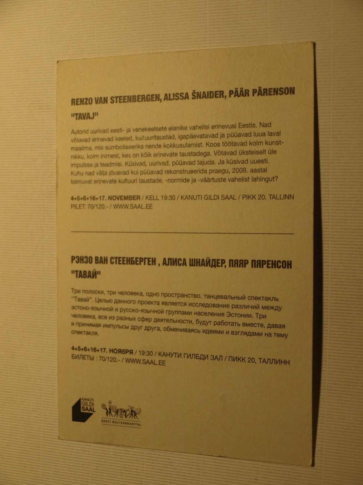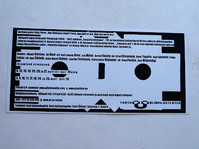 Olles kahaneva tempoga kogunud nullindate algusest alates flaiereid, tundsin, et nüüd on viimane aeg need üles pildistada ja siia postitada. Viimane aeg praktilistel põhjustel, kuna ees seisvate kolimiste tagajärjel läheksid need lähiajal ühel või teisel viisil kuidagi ikka kaduma. Viimane aeg ka poeetilistel (ning poeetiliselt liialdatud) põhjustel, kuna trükitud flaiereid levib aina vähem (teadagi, kuhu kõik flaierid koondunud on). Ülevaade Tallinna (ja vähesel määral Tartu) nullindate flaieritest on seega omamoodi nekroloog hääbunud (või hääbuvale) nähtusele, ehkki loodan ka seda, et järgnev pildimeri inspireerib ürituste korraldajaid taas flaiereid välja andma.