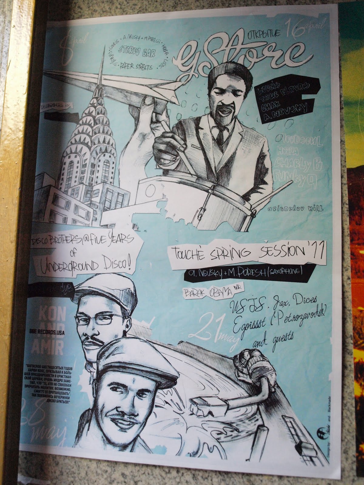Nagu meil tänapäeval läänes (ja idas) nõuks võetud, siis see kõige vitaalsem osa plakatikunstist elutseb sfääris, kus tegutsevad dj'd, bändid ja need teised, kes leiavad end öös. Peterburi skene teenäitajateks on klubid Gribojedov ja Fish Fabrique Nouvelle. Nende plakatirepertuaarist leiab ikka ja jälle midagi huvitavat, kuigi valeta võib öelda, et Tallinna ja Tartu plakatid on neist peajagu üle. Nii et oleks hirmus hea meel, kui saaks sügisel teha Peterburis näituse Tallinna plakatitest..