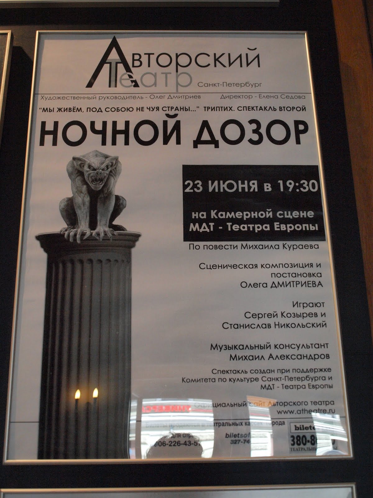 See on haarav plakat. Ka etendus oli hea. Räägitakse, et selles Rubinšteini tänava Euroopa-nimelises draamateatris näidatakse ainult väga head teatrit.