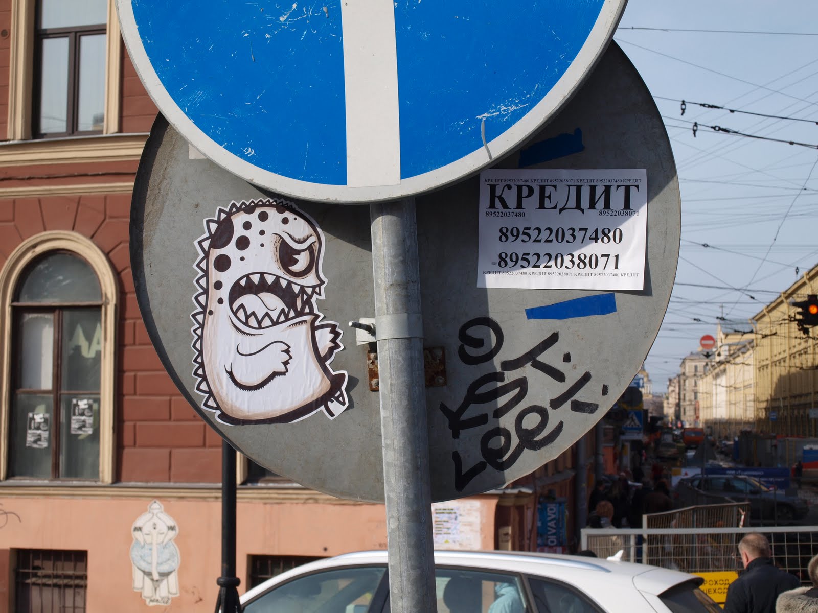 9. klassi lõpueksamil Prahasse ütles giid, et küll te näete, mõne aasta pärast on ka Tallinna tänavate seinad samaväärselt täissoditud. Aga ei näinud, nii ei läinud. Tänagem või süüdistagem selles - kuidas kellelegi - eestlaste loomuomast alalhoidlikkust, linnavalitsuse tulemuslikke vastulahinguid või üleüldist fantastilist leplikkust. See-eest on Peterburis kõikvõimalike seinapindade moonutamine omandanud linnapildis sedavõrd totaalse ulatuse, et raske on leida mõnda maja, elektrikappi, liiklusmärki või bussipeatust, mida poleks soditud, kritseldatud, sirgeldatud või klepsudega täidetud.