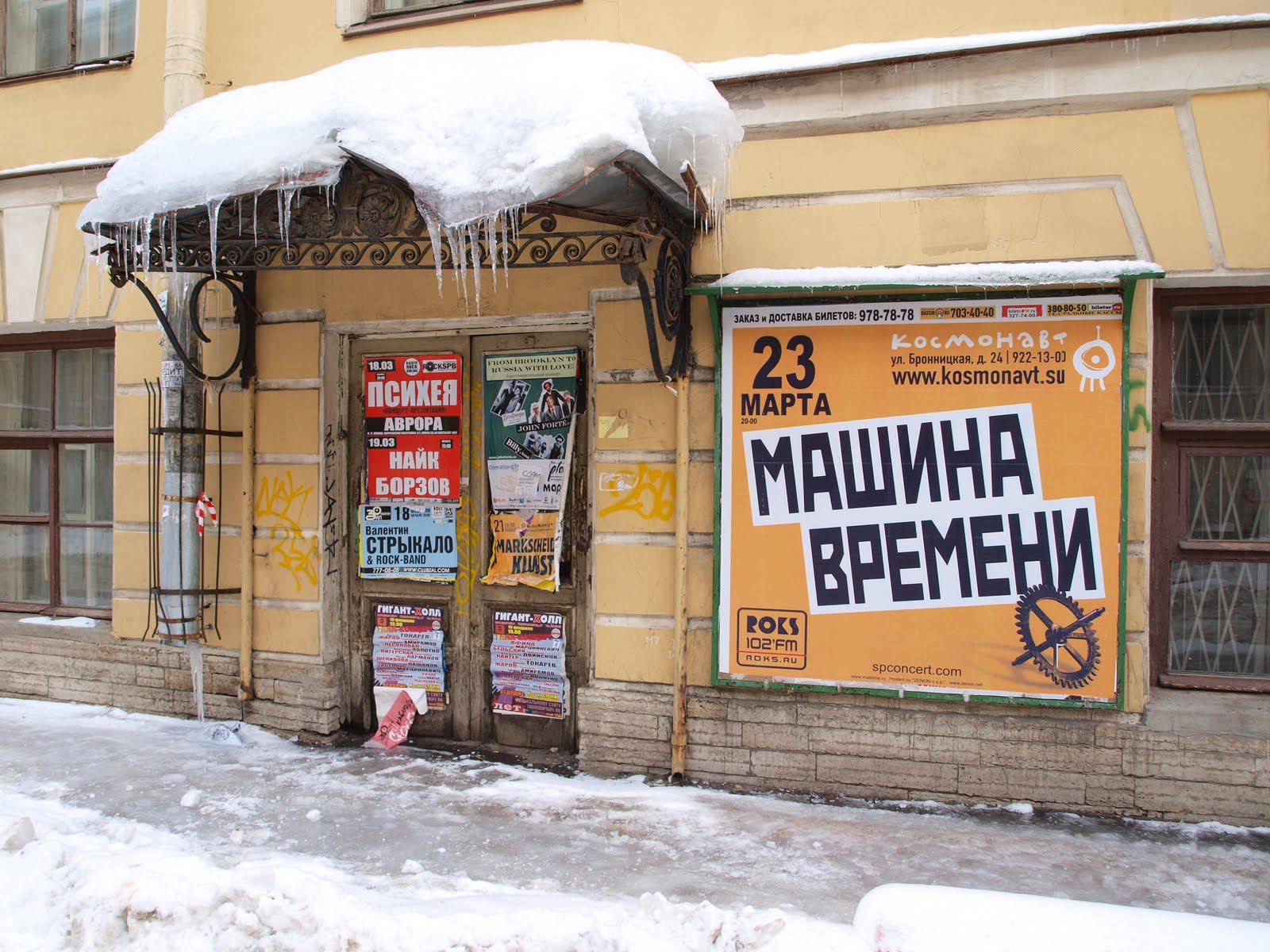 Lomonossovi tänav, kuhu koonduvad mitmed klubid ja pubid. Mais tahaks kirjutada artikli Peterburi plakatitest, siis tuleb suur hunnik neist kindlasti Lomonossovi tänava piirkonnast.