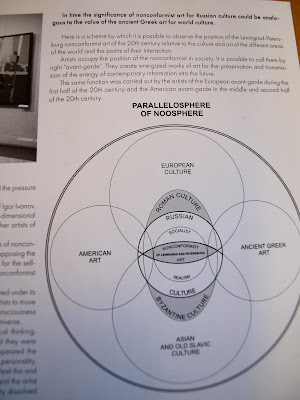 Eelmise aasta EKA Kunstiteaduse Instituudi kevadreis viis tudengid Peterburi. Kavasse kuulus ka NKM, mille kohta keegi küll täpsemalt ei teadnud, kus see asub või mida seal eksponeeritakse. Nii tuuseldasime kolmekümnepealise kambaga oma veerand tundi mööda Puškinskaja tänavat, kuniks keegi mööduja teatas, et sissekäik asub paralleelsel Lidovski prospektil. Leidsime üles peaukse, raamatupoe, tsentraalse trepikoja, kuid näitusesaal valmistas tookord vast kõigile pettumuse. Oodati nõukogude underground'ile keskenduvat kunstimuuseumi, kuid eest leiti neli-viis tuba (jah, pigem ikka toad kui saalid), mille seintel rippusid piinlikult naiivsed, arusaamatult lapsikud ja lihtsalt ebaprofessionaalsed maalid 2009. aastast. Tekkis küsimus: mis mõttes Nonkonformistliku Kunsti Muuseum? Millega õigustatakse sellist nimetust ning kellele sellist muuseumi üldse vaja on?